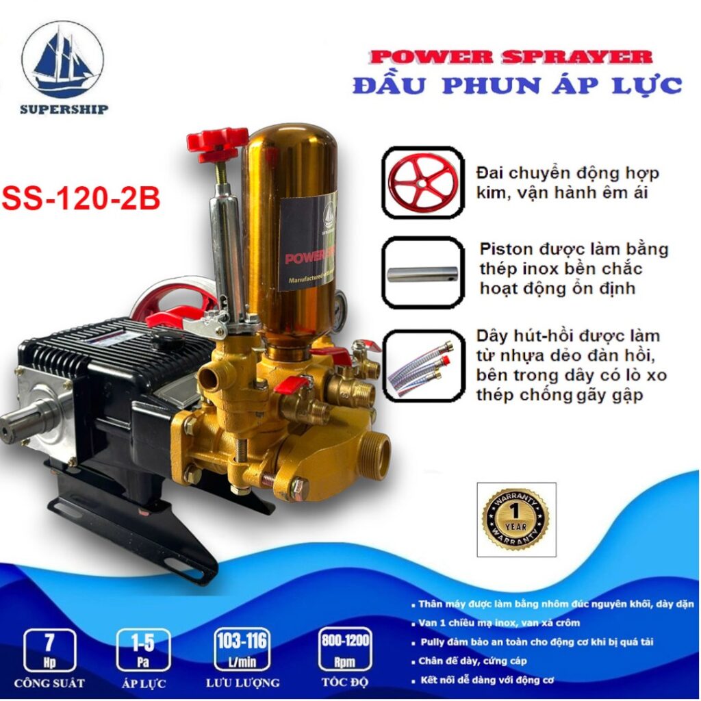 Đầu phun áp lực SUPER SHIP SS-120-2 là sản phẩm mới của Công ty VĨ CƯỜNG được sản xuất tại Trung Quốc theo công nghệ mới. Với bình tích áp sử dụng chất liệu inox, Van 1 chiều (Luppe) inox được lắp ở đầu ống hút có chức năng giữ nước mồi, ngăn nước chảy ngược khi máy bơm ngừng hoạt động, giúp máy bơm hoạt động ổn định, đồng thời hoạt động với tốc độ cao mang lại hiệu suất làm việc mạnh mẽ hơn và áp lực nước lớn hơn. Giúp bạn dễ dàng xử lý mọi vết bám bẩn trên xe hoặc tường, sân, vườn, v.v. Sản phẩm có nhiều ưu điểm và tính năng vượt trội, mang lại nhiều lợi ích và tiện lợi khi sử dụng.
