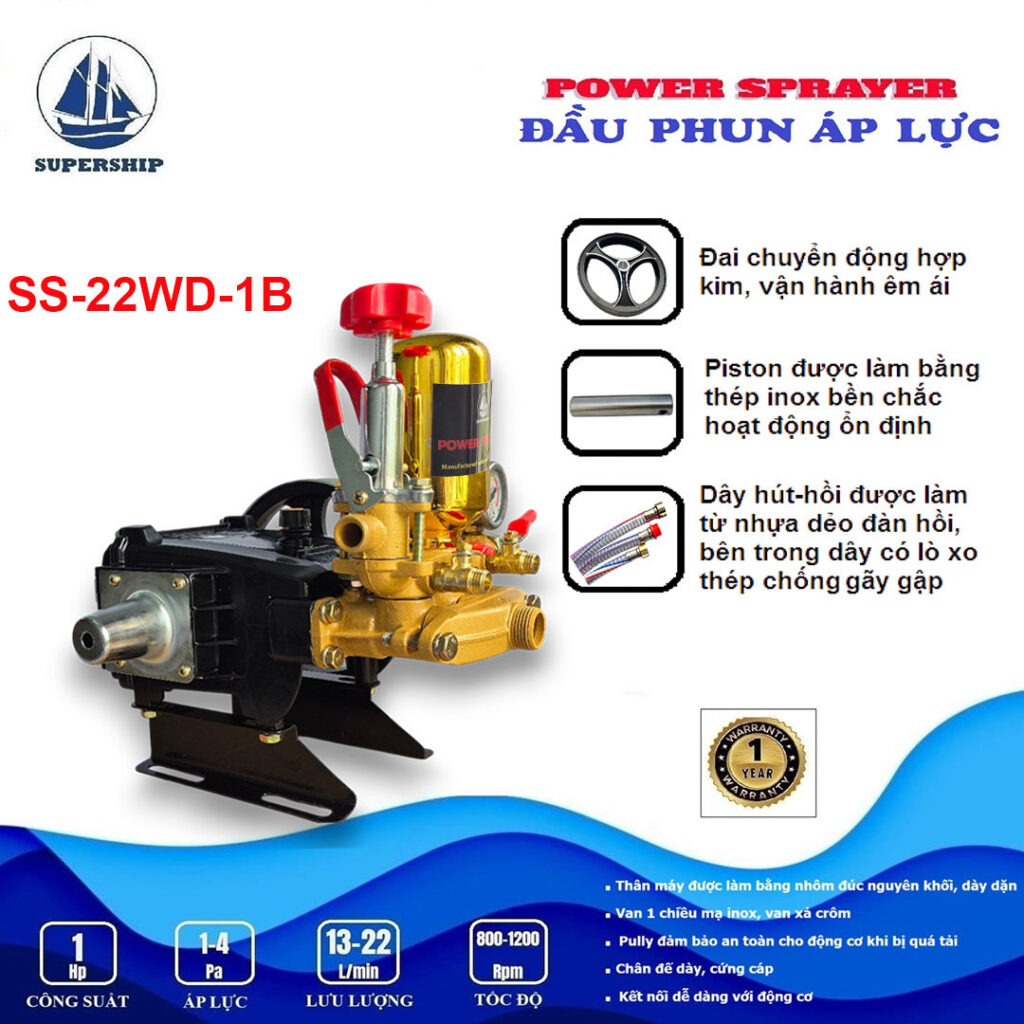 Đầu phun áp lực SUPER SHIP SS-22WD-1B là sản phẩm mới của Công ty VĨ CƯỜNG được sản xuất tại Trung Quốc theo công nghệ mới. Với bình tích áp sử dụng chất liệu inox, Van 1 chiều (Luppe) inox được lắp ở đầu ống hút có chức năng giữ nước mồi, ngăn nước chảy ngược khi Đầu phun áp lực kết nối máy bơm ngừng hoạt động, giúp máy bơm hoạt động ổn định, đồng thời hoạt động với tốc độ cao mang lại hiệu suất làm việc mạnh mẽ hơn và áp lực nước lớn hơn. Giúp bạn dễ dàng xử lý mọi vết bám bẩn trên xe hoặc tường, sân, vườn, v.v. Sản phẩm có nhiều ưu điểm và tính năng vượt trội, mang lại nhiều lợi ích và tiện lợi khi sử dụng.