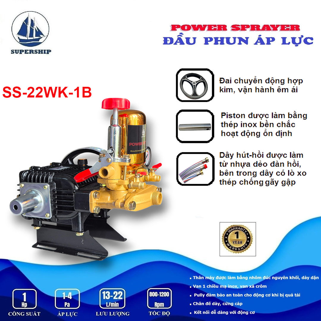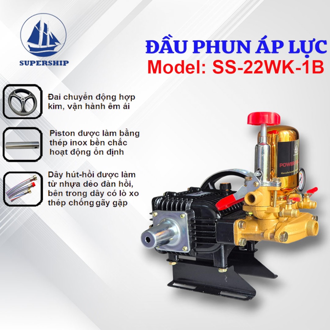Đầu phun áp lực SUPER SHIP SS-22WK-1B là sản phẩm mới của Công ty VĨ CƯỜNG được sản xuất tại Trung Quốc theo công nghệ mới. Với bình tích áp sử dụng chất liệu inox mạ vàng, Van 1 chiều (Luppe) inox được lắp ở đầu ống hút có chức năng giữ nước mồi, ngăn nước chảy ngược khi máy bơm ngừng hoạt động, giúp máy bơm hoạt động ổn định, đồng thời hoạt động với tốc độ cao mang lại hiệu suất làm việc mạnh mẽ hơn và áp lực nước lớn hơn. Giúp bạn dễ dàng xử lý mọi vết bám bẩn trên xe hoặc tường, sân, vườn, v.v. Sản phẩm có nhiều ưu điểm và tính năng vượt trội, mang lại nhiều lợi ích và tiện lợi khi sử dụng.