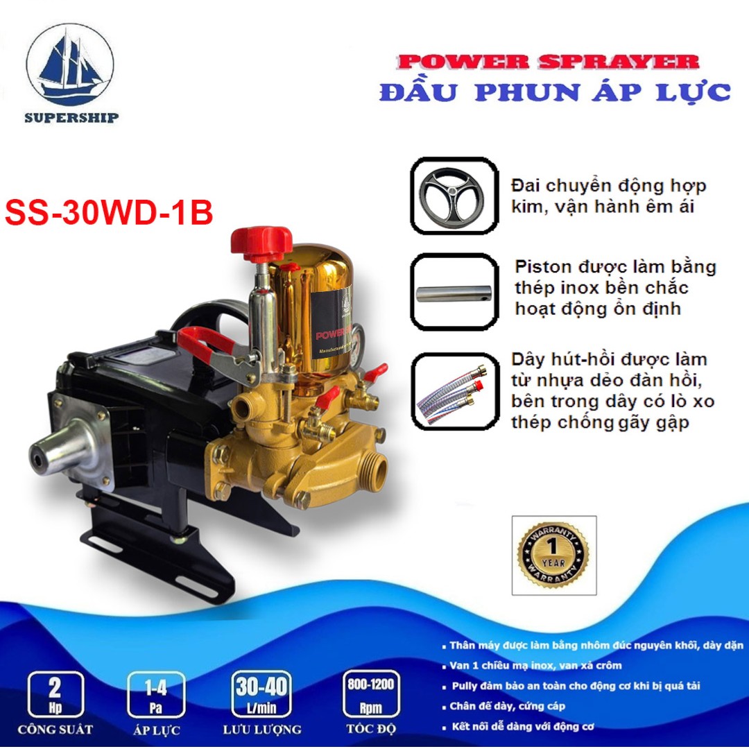 Đầu phun áp lực SUPER SHIP SS-30WD-1B là sản phẩm mới của Công ty VĨ CƯỜNG được sản xuất tại Trung Quốc theo công nghệ mới. Với bình tích áp sử dụng chất liệu inox, Van 1 chiều (Luppe) inox được lắp ở đầu ống hút có chức năng giữ nước mồi, ngăn nước chảy ngược khi Đầu phun áp lực kết nối máy bơm ngừng hoạt động, giúp máy bơm hoạt động ổn định, đồng thời hoạt động với tốc độ cao mang lại hiệu suất làm việc mạnh mẽ hơn và áp lực nước lớn hơn. Giúp bạn dễ dàng xử lý mọi vết bám bẩn trên xe hoặc tường, sân, vườn, v.v. Sản phẩm có nhiều ưu điểm và tính năng vượt trội, mang lại nhiều lợi ích và tiện lợi khi sử dụng.