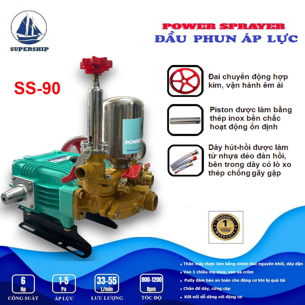 Đầu phun áp lực SUPER SHIP SS-90 là sản phẩm mới của Công ty VĨ CƯỜNG được sản xuất tại Trung Quốc theo công nghệ mới. Với bình tích áp sử dụng chất liệu inox, Van 1 chiều (Luppe) inox được lắp ở đầu ống hút có chức năng giữ nước mồi, ngăn nước chảy ngược khi máy bơm ngừng hoạt động, giúp máy bơm hoạt động ổn định, đồng thời hoạt động với tốc độ cao mang lại hiệu suất làm việc mạnh mẽ hơn và áp lực nước lớn hơn. Giúp bạn dễ dàng xử lý mọi vết bám bẩn trên xe hoặc tường, sân, vườn, v.v. Sản phẩm có nhiều ưu điểm và tính năng vượt trội, mang lại nhiều lợi ích và tiện lợi khi sử dụng.