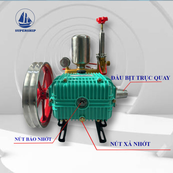 • Đầu bơm dày, nặng đảm bảo độ bền, trang bị đồng hồ đo áp lực