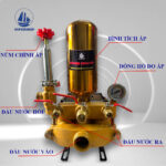 • Đầu bơm dày, nặng đảm bảo độ bền, trang bị đồng hồ đo áp lực