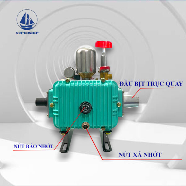 • Đầu bơm dày, nặng đảm bảo độ bền, trang bị đồng hồ đo áp lực