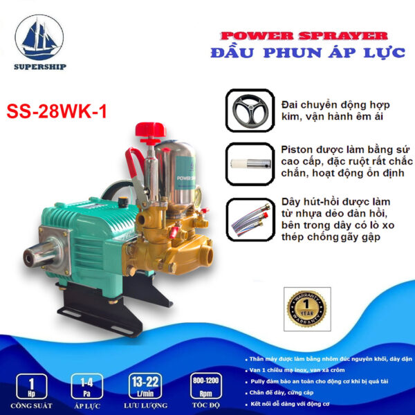Đầu phun áp lực SUPER SHIP SS-28WK-1 là sản phẩm mới của Công ty VĨ CƯỜNG được sản xuất tại Trung Quốc theo công nghệ mới. Với bình tích áp sử dụng chất liệu inox, Van 1 chiều (Luppe) inox được lắp ở đầu ống hút có chức năng giữ nước mồi, ngăn nước chảy ngược khi máy bơm ngừng hoạt động, giúp máy bơm hoạt động ổn định, đồng thời hoạt động với tốc độ cao mang lại hiệu suất làm việc mạnh mẽ hơn và áp lực nước lớn hơn. Giúp bạn dễ dàng xử lý mọi vết bám bẩn trên xe hoặc tường, sân, vườn, v.v. Sản phẩm có nhiều ưu điểm và tính năng vượt trội, mang lại nhiều lợi ích và tiện lợi khi sử dụng.