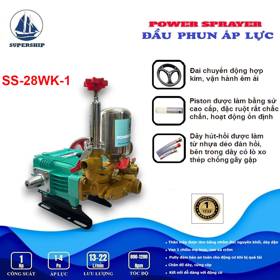 Đầu phun áp lực SUPER SHIP SS-28WK-1 là sản phẩm mới của Công ty VĨ CƯỜNG được sản xuất tại Trung Quốc theo công nghệ mới. Với bình tích áp sử dụng chất liệu inox, Van 1 chiều (Luppe) inox được lắp ở đầu ống hút có chức năng giữ nước mồi, ngăn nước chảy ngược khi máy bơm ngừng hoạt động, giúp máy bơm hoạt động ổn định, đồng thời hoạt động với tốc độ cao mang lại hiệu suất làm việc mạnh mẽ hơn và áp lực nước lớn hơn. Giúp bạn dễ dàng xử lý mọi vết bám bẩn trên xe hoặc tường, sân, vườn, v.v. Sản phẩm có nhiều ưu điểm và tính năng vượt trội, mang lại nhiều lợi ích và tiện lợi khi sử dụng.