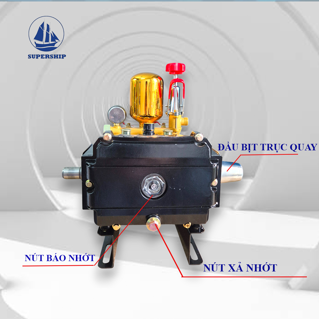 • Đầu bơm dày, nặng đảm bảo độ bền, trang bị đồng hồ đo áp lực