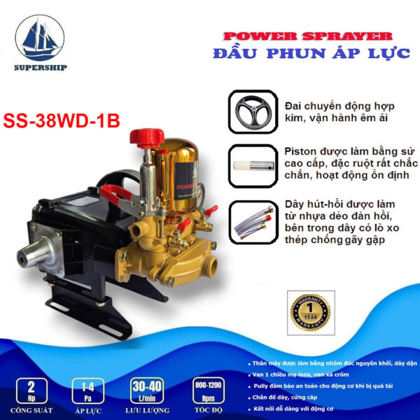 Đầu phun áp lực SUPER SHIP SS-38WD-1B là sản phẩm mới của Công ty VĨ CƯỜNG được sản xuất tại Trung Quốc theo công nghệ mới. Với bình tích áp sử dụng chất liệu inox, Van 1 chiều (Luppe) inox được lắp ở đầu ống hút có chức năng giữ nước mồi, ngăn nước chảy ngược khi máy bơm ngừng hoạt động, giúp máy bơm hoạt động ổn định, đồng thời hoạt động với tốc độ cao mang lại hiệu suất làm việc mạnh mẽ hơn và áp lực nước lớn hơn. Giúp bạn dễ dàng xử lý mọi vết bám bẩn trên xe hoặc tường, sân, vườn, v.v. Sản phẩm có nhiều ưu điểm và tính năng vượt trội, mang lại nhiều lợi ích và tiện lợi khi sử dụng.
