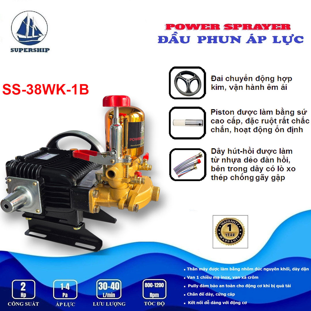 Đầu phun áp lực SUPER SHIP SS-38WK-1B là sản phẩm mới của Công ty VĨ CƯỜNG được sản xuất tại Trung Quốc theo công nghệ mới. Với bình tích áp sử dụng chất liệu inox, Van 1 chiều (Luppe) inox được lắp ở đầu ống hút có chức năng giữ nước mồi, ngăn nước chảy ngược khi máy bơm ngừng hoạt động, giúp máy bơm hoạt động ổn định, đồng thời hoạt động với tốc độ cao mang lại hiệu suất làm việc mạnh mẽ hơn và áp lực nước lớn hơn. Giúp bạn dễ dàng xử lý mọi vết bám bẩn trên xe hoặc tường, sân, vườn, v.v. Sản phẩm có nhiều ưu điểm và tính năng vượt trội, mang lại nhiều lợi ích và tiện lợi khi sử dụng.