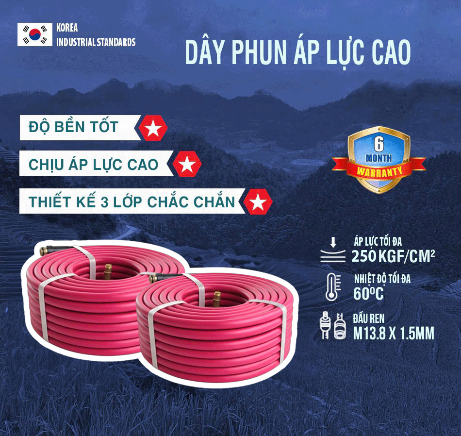 + Dây được sản xuất theo tiêu chuẩn công nghệ Hàn Quốc, thiết kế có độ bền cao, chịu được áp lực và dẫn áp tốt.
