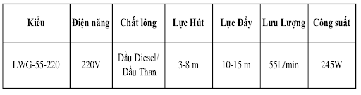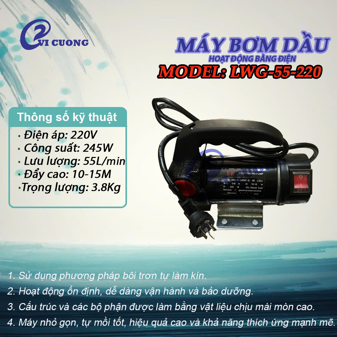 – Máy bơm dầu LWG-55 hiệu SHIP là sản phẩm được dùng để hút dầu nhớt, diesel, dầu DO dạng dầu lỏng. Sản xuất theo công nghệ tiên tiến, đáp ứng nhu cầu bơm nhiên liệu và dầu nhớt có độ bền cao, hoạt động êm ái, ổn định, bền bỉ, dễ lắp đặt và vận hành, tuổi thọ sử dụng cao, ít phải bảo trì.