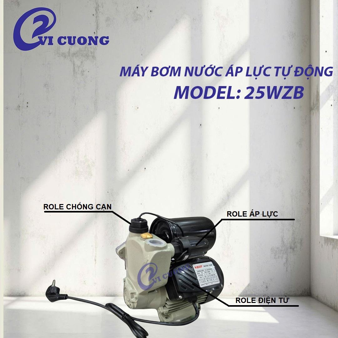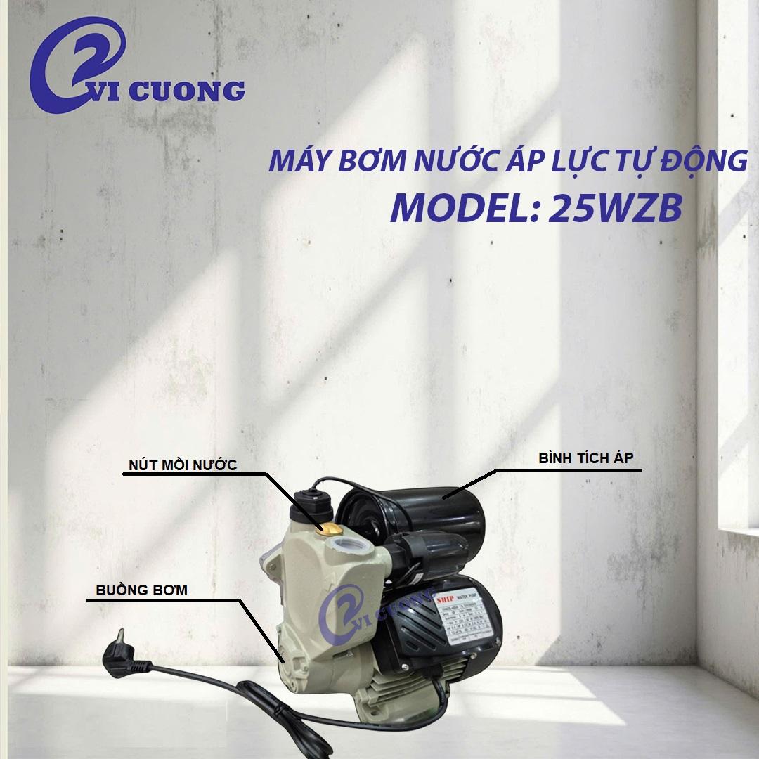 Máy bơm nước áp lực tự động 25WZB hiệu SHIP có 2 màu trắng và xanh, là loại máy bơm được cấu tạo với khả năng tự động điều chỉ áp suất trong hệ thống cung cấp nước. Khi áp lực tăng hoặc giảm, cảm biến sẽ gửi tín hiệu đến bộ điều khiển, sau đó khởi động máy bơm. Máy bơm sẽ hoạt động đến khi đạt được mức áp lực đã được thiết lập ban đầu. Máy bơm tăng áp tự động được ứng dụng vào đời sống con người và nhiều lĩnh vực liên quan đến nông nghiệp, công nghiệp: sử dụng cho hộ gia đình, hỗ trợ tưới tiêu, nuôi trồng thủy sản, phun thuốc, phun sương, sản xuất công nghiệp,…