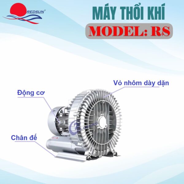 – Máy thổi khí RS do hãng REDSUN sản xuất khởi động bằng motor điện hoặc máy nổ thiết kế theo kỹ thuật tiên tiến.
